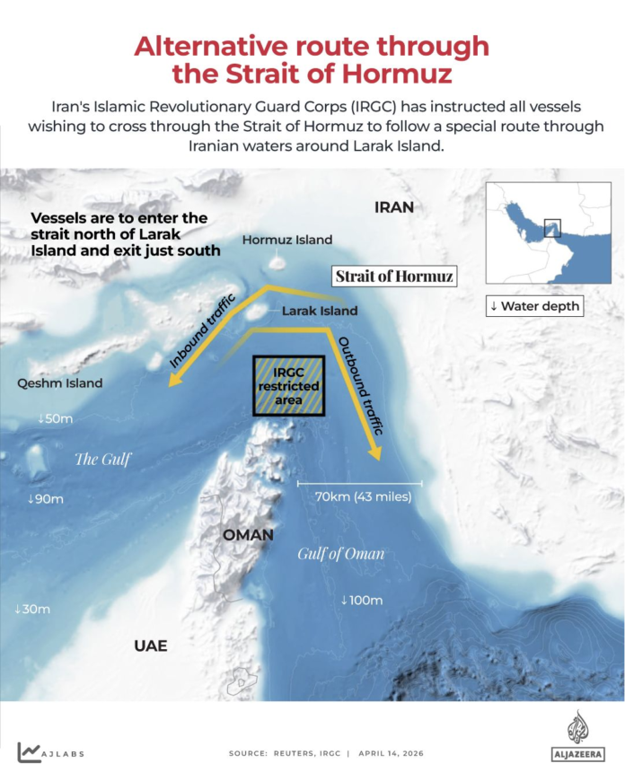 Iran insists on sovereignty over the waterway, which lies within the territorial waters of Iran and Oman and does not fall into international waters, and stated that only “nonhostile” ships could pass. It has also floated the idea of levying tolls while Washington demands full freedom of navigation.