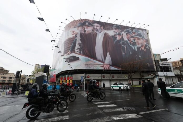 Security personnel ride on motorbikes, on a day of a protest marking the annual al-Quds Day (Jerusalem Day) on the last Friday of the holy month of Ramadan in Tehran, Iran, on March 13, 2026 [Alaa Al Marjani/Reuters]