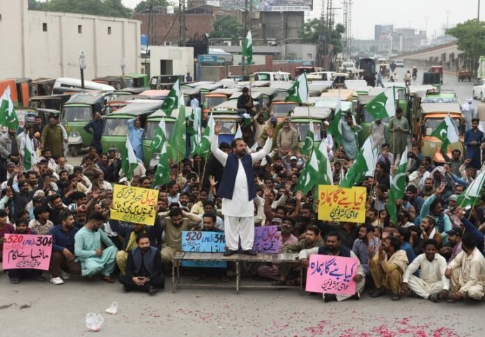 Rickshaw drivers in Lahore protest against rising fuel prices during the U.S.-Israeli conflict with Iran, April 7, 2026 [Murtaza Ali/ Reuters]