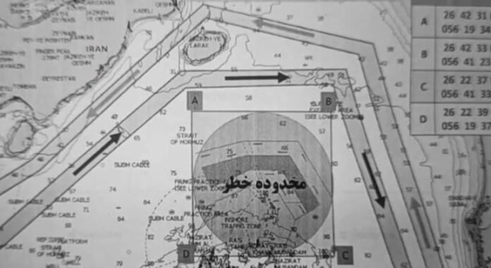The map appears to direct ships farther north towards the Iranian coast and away from the traditional route closer to the coast of Oman.
