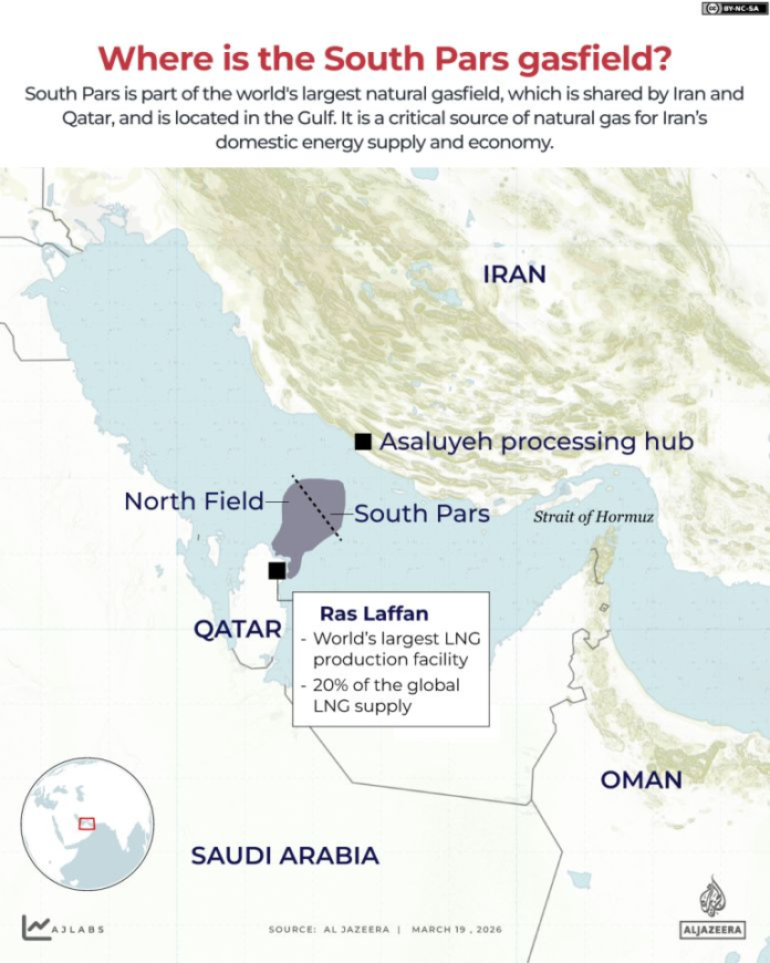 Iran has since struck back, launching thousands of missiles and drones towards Israel as well as US military assets and infrastructure in neighbouring Gulf countries. The war stepped up a level this week, when Israel bombed Iran’s critical South Pars gasfield, and Iran hit back with strikes on Gulf energy assets, including Qatar’s Ras Laffan Liquefied Natural Gas (LNG) facility – the world’s largest.